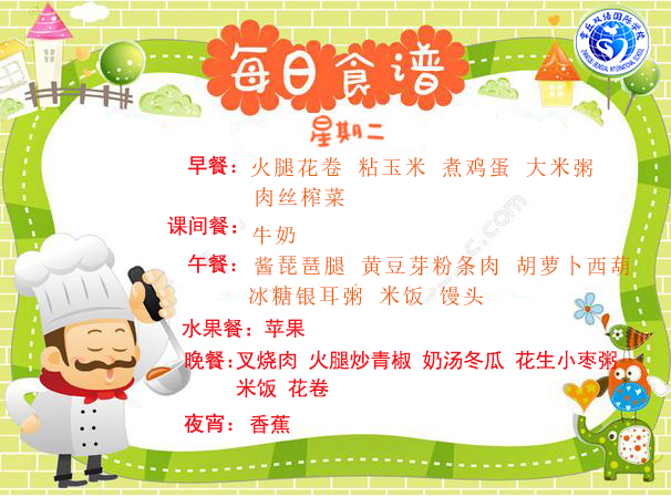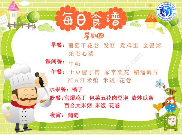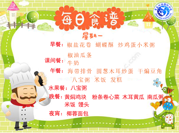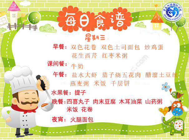 達州巨全雙語學校食堂2018.9.3-9.9食譜