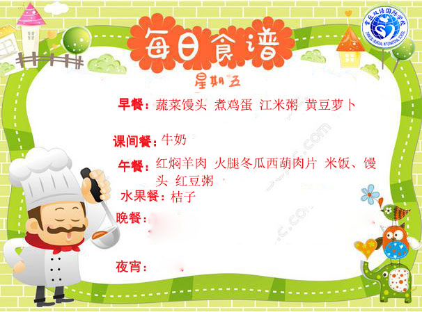 達州巨全雙語學校食堂2019.1.6-1.12食譜