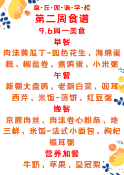 達州巨全雙語學校第二周食譜