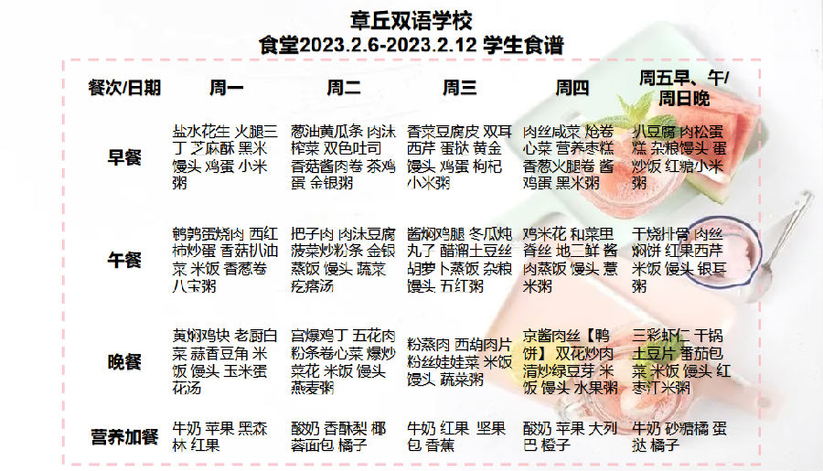 本周營養成分(fēn)表