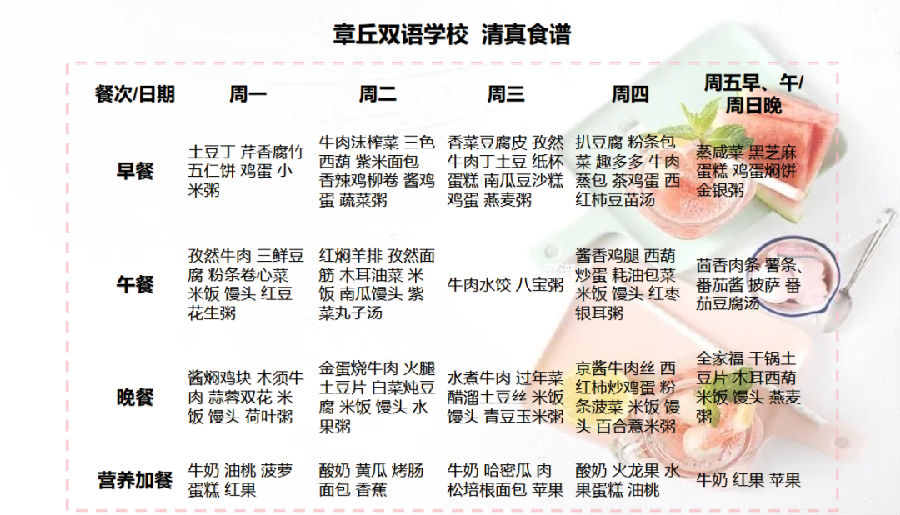 達州巨全雙語學校食譜2023.6.12-2023.6.18