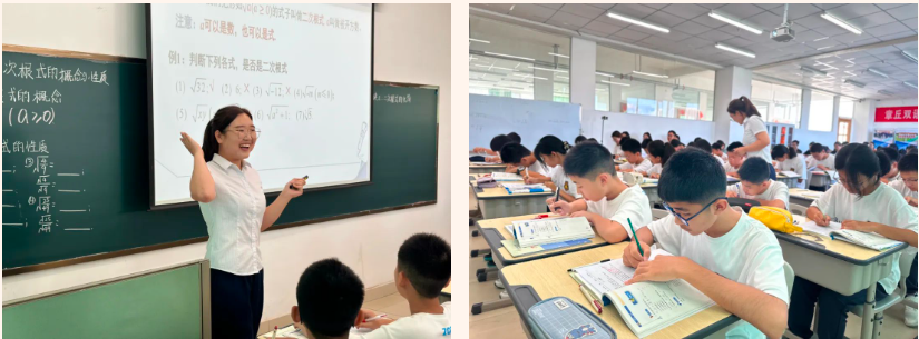 展雪老師《二次根式》摒棄了傳統教學中(zhōng)瑣碎機械的練習,小(xiǎo)組互助批改,整節課堂節奏流暢高效,學生(shēng)敢想、敢說、敢問,積極表達。