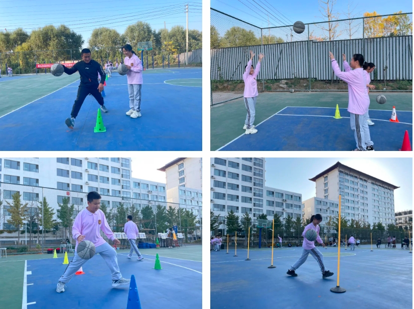 體(tǐ)育教師王榮騰執教的《體(tǐ)前變向換手運球》,穩踏霸氣步伐,靈動換手運球,學生(shēng)們在合作中(zhōng)突破,酣暢淋漓,用運動彰顯青春夢想。