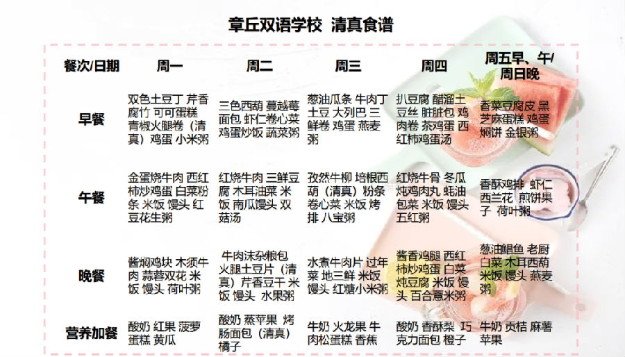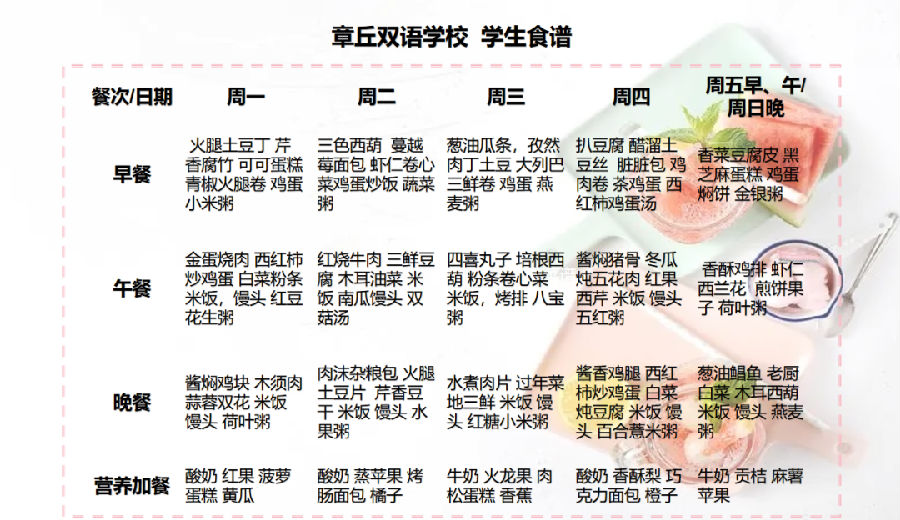 達州巨全雙語學校食譜2023.12.11-2023.12.17