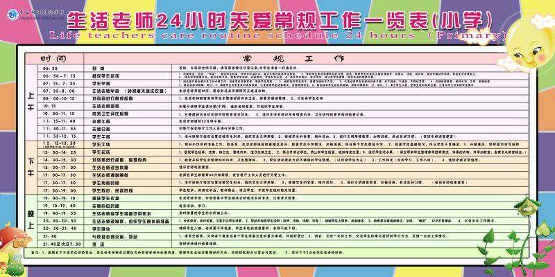 生(shēng)活老師24小(xiǎo)時常規工(gōng)作一(yī)覽表