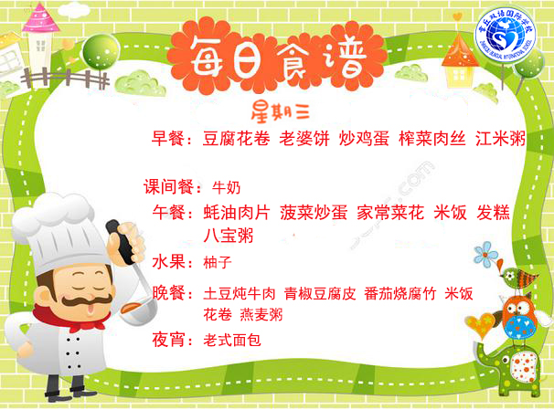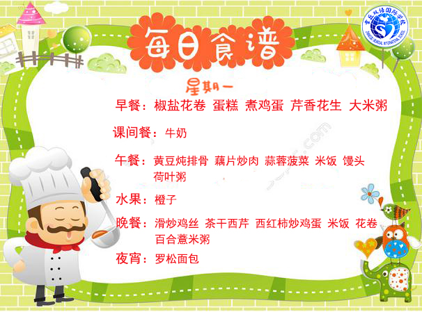 章丘雙語國際學校食堂2017.3.11-3.16食譜